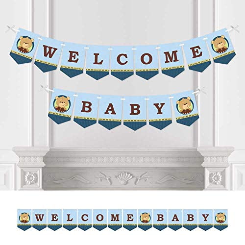 Big Dot Of Happiness Baby Boy Teddy Bear Baby Shower Bunting Banner Blue Party Decorations Welcome Baby Walmart Com